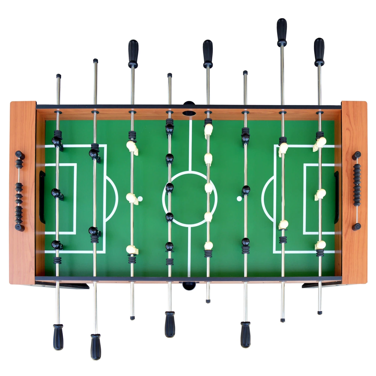 The Hurricane 54-in Foosball Table is engineered to bring family fun and excitement right into the comfort of your home. Designed for recreational fun and competition, this table is perfect for players of all ages. The cabinet is constructed from CARB certified MDF and supported by four sturdy L-shaped legs with adjustable leg levelers to keep your table balanced on uneven surfaces. The attractive light cherry and black melamine cabinetry and life-like grass playfield combine to create a handsome looking table that plays great. Includes four quality foosballs.