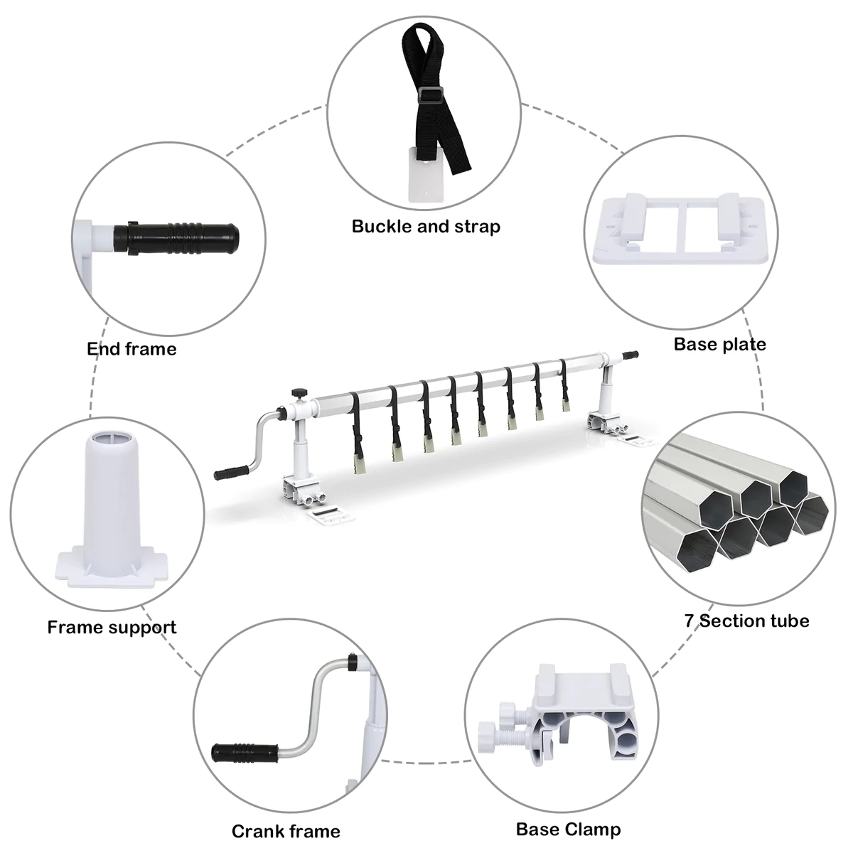 - Mounts on traditional pool top rail or on tubular frame pools.